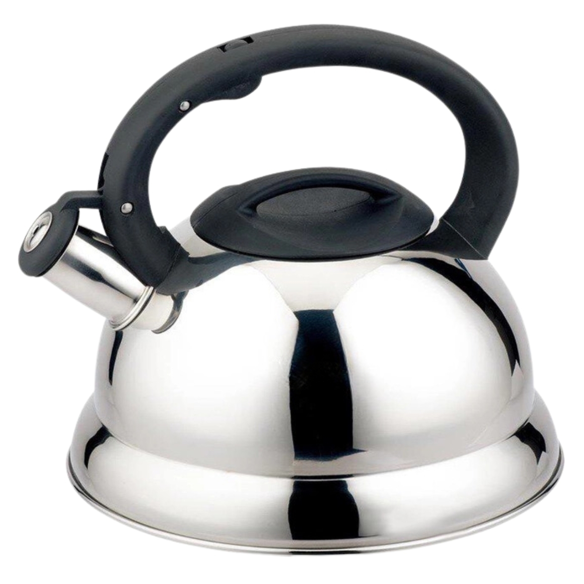 RVS fluitketel met een zwart kunststof handvat en een maximale inhoud van 3,5 liter.