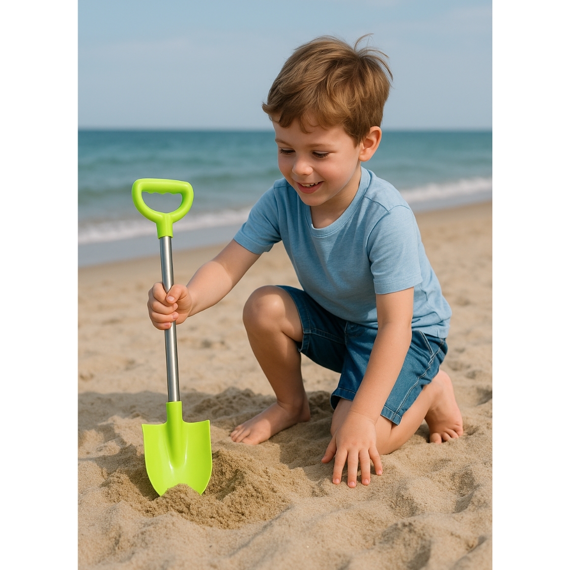 Deze kleurrijke strandschep van ca. 75 cm lang is perfect voor kinderen vanaf 1,5 jaar die graag in het zand spelen. Ideaal voor op het strand of in de zandbak en leverbaar in geel, blauw of groen. Een leuk zomerspeelgoed voor vakantie of buitenspelen waarmee kinderen actief kunnen scheppen en ontdekken.