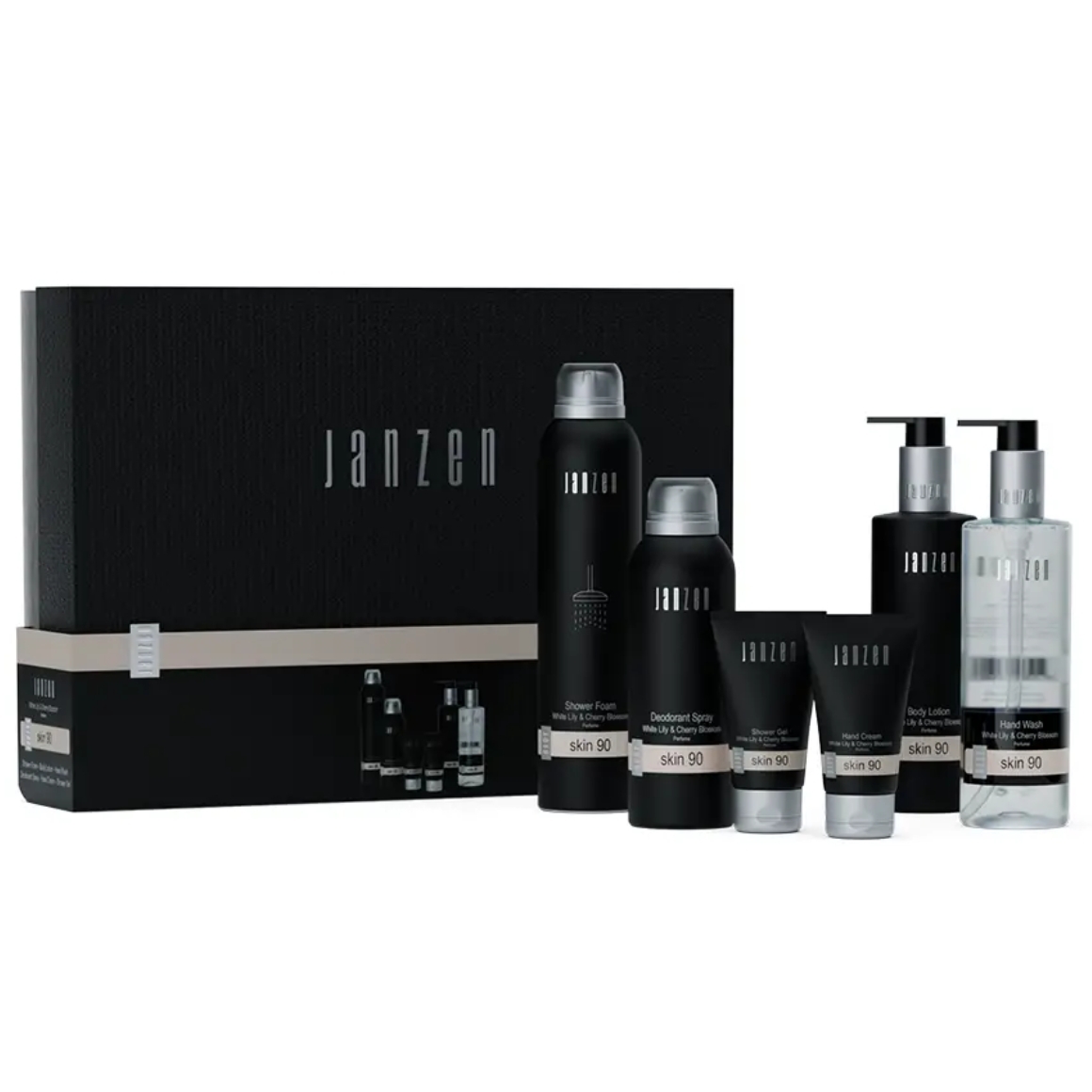 Een prachtige giftset van het merk Janzen, gevuld met verzorgende producten voor een heerlijke huidverzorging. Dankzij deze fijne producten begin je de dag fris en vol energie. De White Lily & Cherry Blossom-geur is een zachte en bloemige combinatie die een gevoel van ontspanning en luxe biedt.