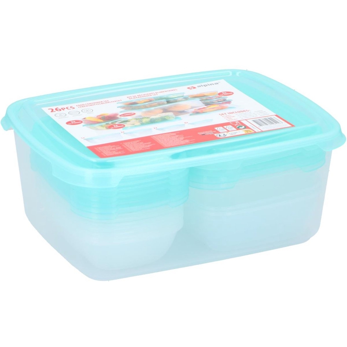 Deze 13-delige vershoudbakken set van Alpina biedt een praktische oplossing voor het bewaren van maaltijden, restjes of ingrediënten. De bakjes worden geleverd met bijpassende deksels en zijn geschikt voor gebruik in de magnetron, vriezer en vaatwasser. Ideaal voor mealprepping of om voedsel overzichtelijk te bewaren. De set bestaat uit: