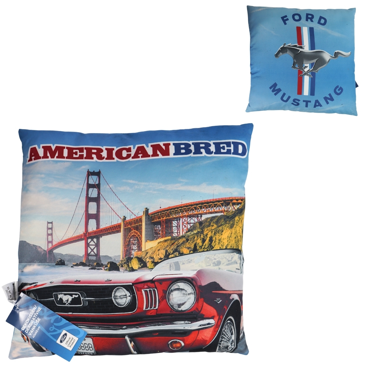 Dit decoratieve kussen met Ford American Bred-print heeft een afmeting van 40 x 40 cm. Gemaakt van 100% polyester en wasbaar op 30 graden. Een stoer kussen dat perfect past bij liefhebbers van klassieke Amerikaanse auto s.