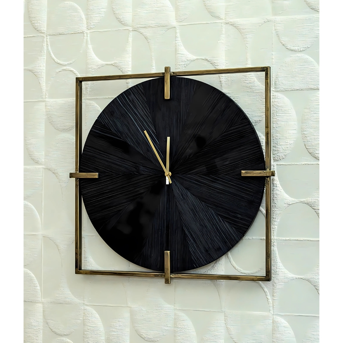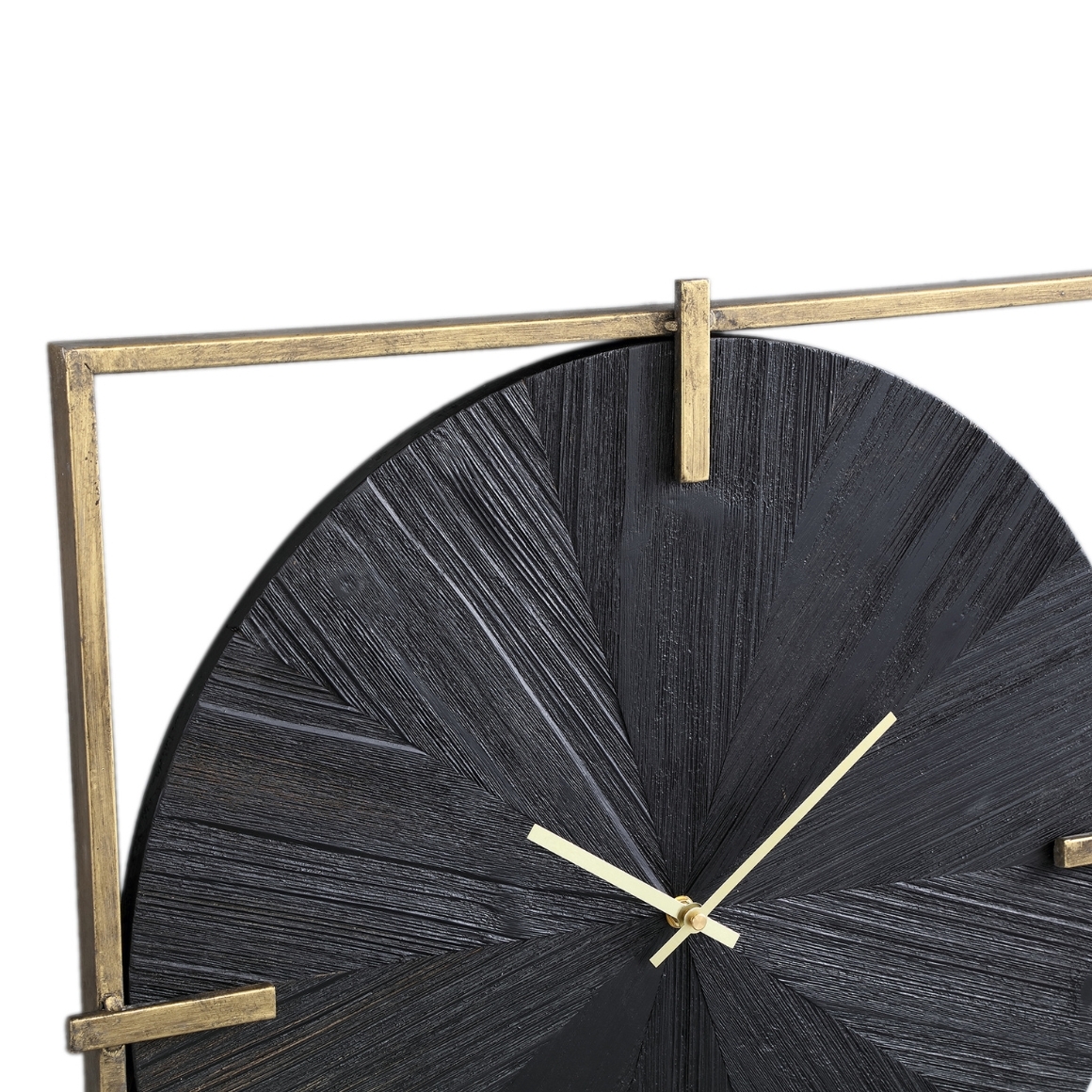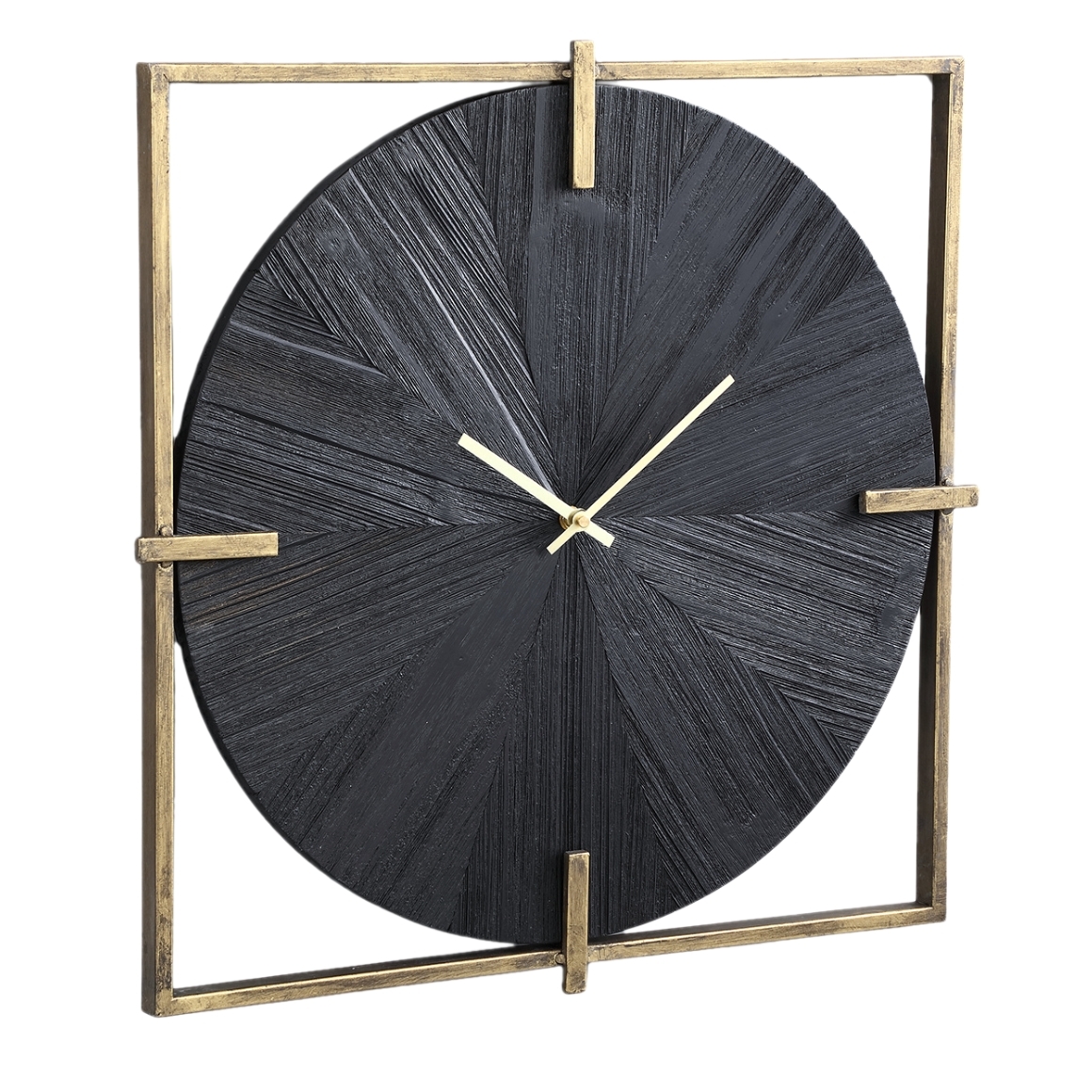 Deze wandklok uit de Oxxo-serie van PTMD combineert een goudkleurig vierkant frame met een zwarte ronde klok in fineerlook, wat zorgt voor een modern chique uitstraling. De klok heeft een diameter van 53 cm en is daarmee een opvallend element aan elke muur. Werkt op 1 AA-batterij (niet inbegrepen) en past perfect in zowel eigentijdse als tijdloze interieurs.