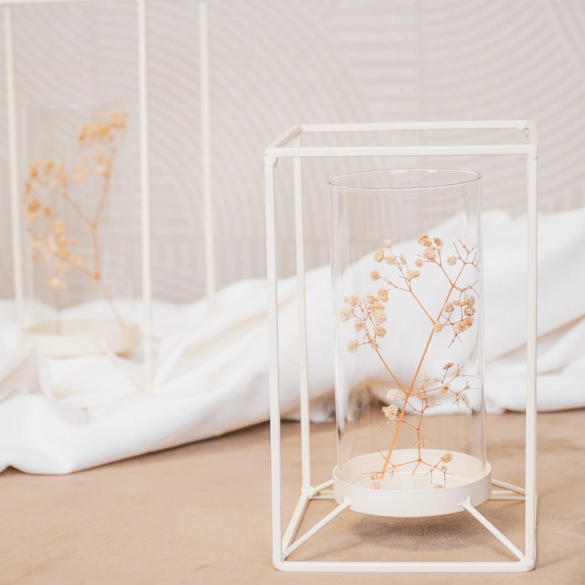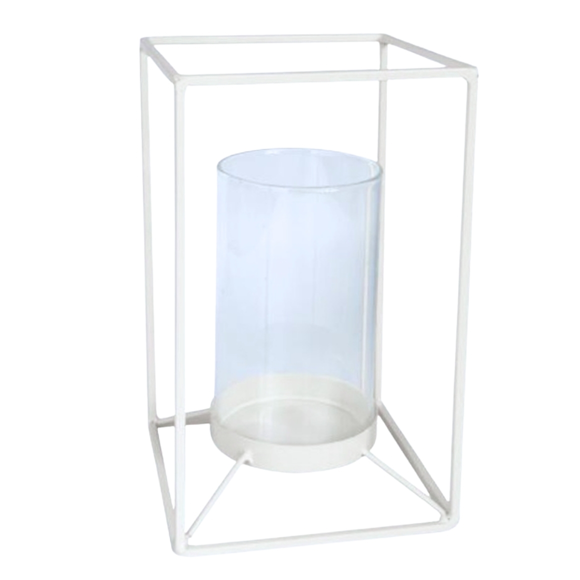 Housevitamin lantaarn van metaal in witte kleur met moderne uitstraling. De lantaarn is 25 cm hoog en voorzien van een losse glazen inzet voor theelichten. Geschikt voor gebruik op tafel, vensterbank of terras en zorgt voor een sfeervol, warm licht.