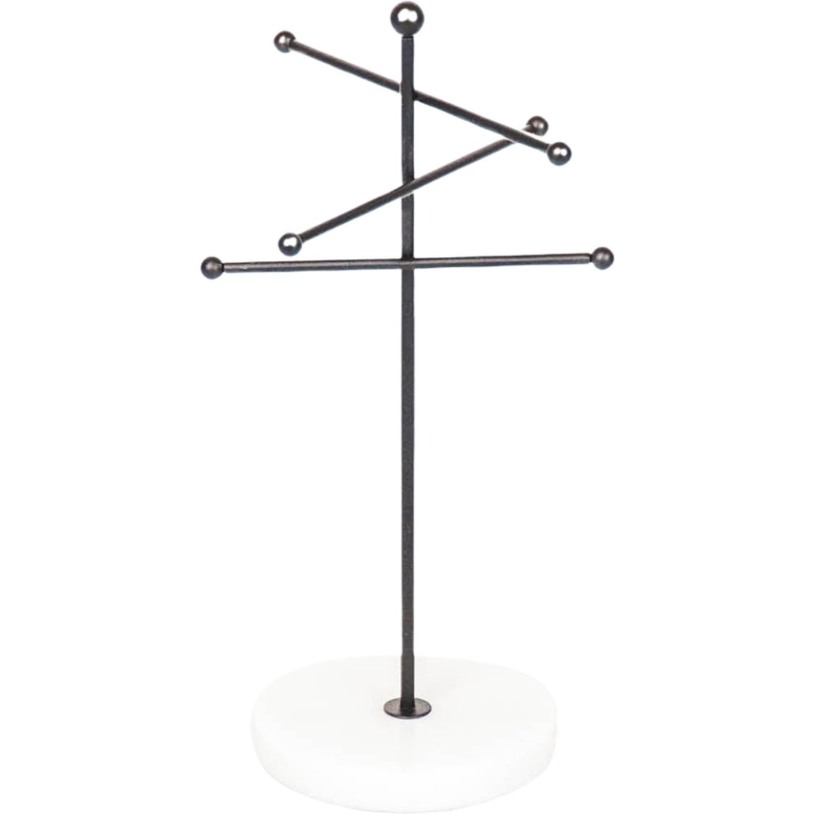 Sieradenhouder van Housevitamin met marmeren voet en metalen houder. Voorzien van meerdere haakjes om sieraden overzichtelijk op te hangen. Gemaakt van stevig metaal en marmer in een stijlvol zwart-wit ontwerp. Afmeting ca. 15 x 14 x 25,5 cm. Geschikt voor kettingen, armbanden en oorbellen.