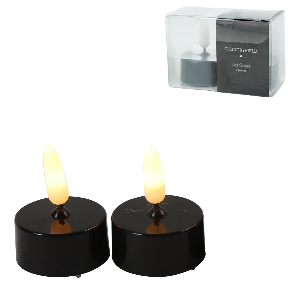 Countryfield LED theelicht Elegance vlameffect zwart 5 cm set van 2
