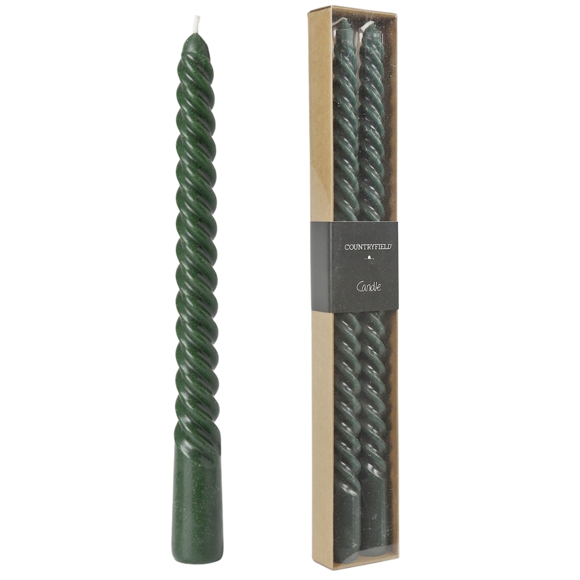 Countryfield dinerkaarsen Twirly groen 2 x 30 cm set van 2