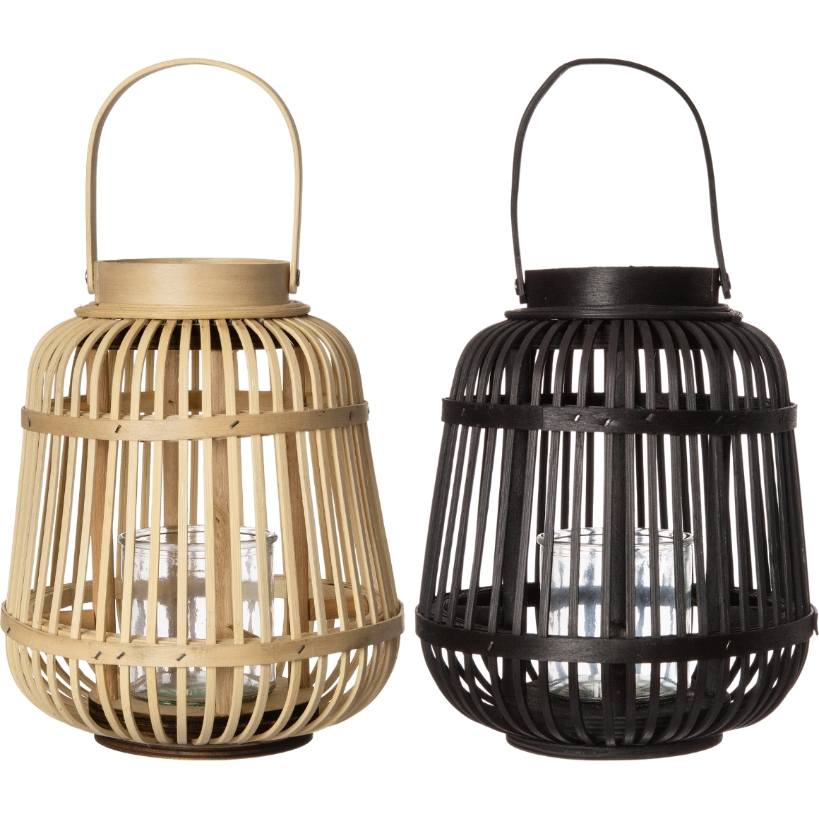 H&S Collection lantaarn Bamboo met glas 24 cm 2 assorti