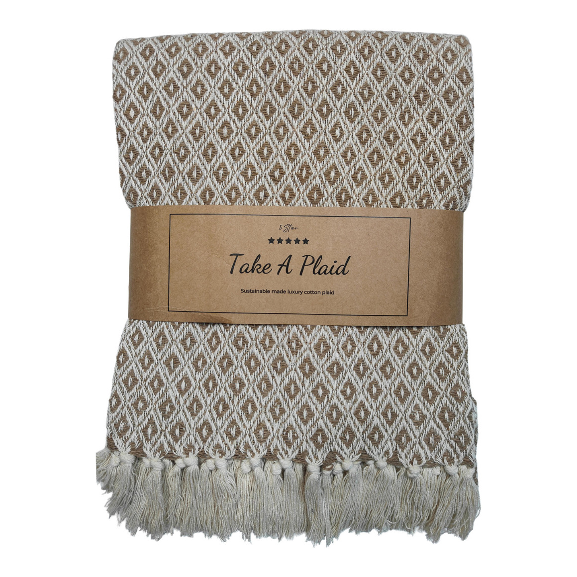 Plaid van het merk Take a Plaid, gemaakt van duurzaam gerecycled katoen. De plaid heeft franjes en een afmeting van 130 x 180 cm.