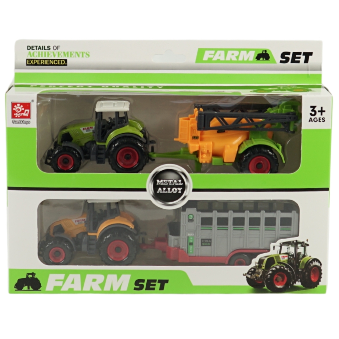 Tractorset 4-delig met verschillende landbouwvoertuigen. Elke set bevat twee tractoren met bijpassende aanhangers in diverse uitvoeringen. De totale lengte van een tractor met aanhanger is 22 cm. Gemaakt van stevig kunststof voor langdurig speelplezier. Geschikt voor kinderen vanaf 3 jaar.