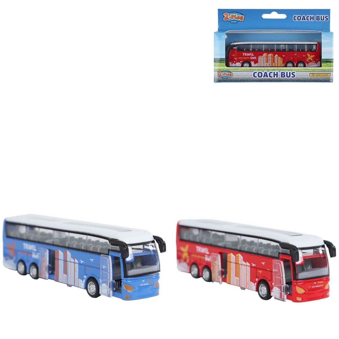 Artikel wordt assorti geleverd, de prijs is per stuk. Deze 2-Play Travel bus is gemaakt van metaal en heeft vrijlopende wielen. Perfect voor kleine voertuigliefhebbers om mee te spelen en te verzamelen. Geschikt voor kinderen vanaf 3 jaar.