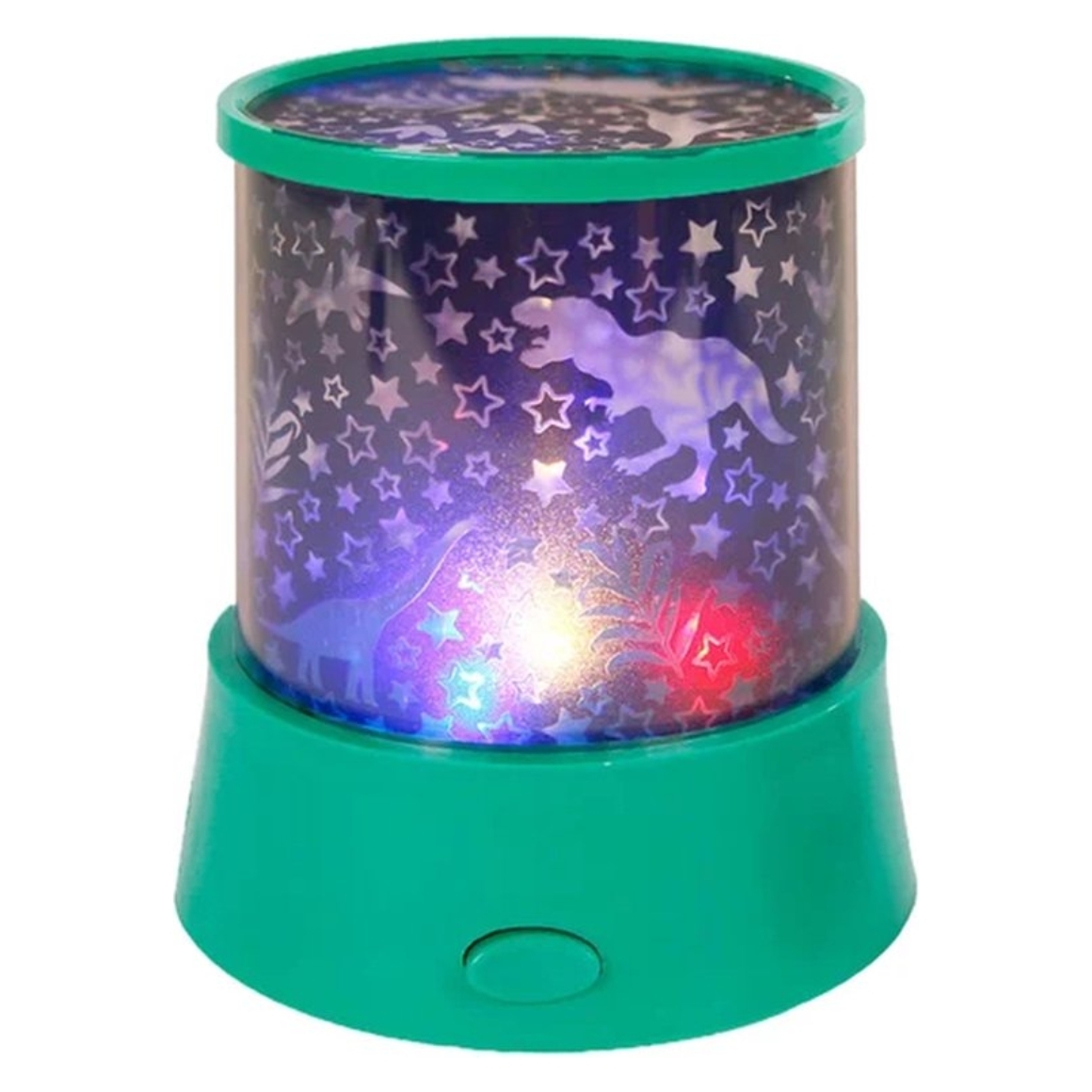 Deze DinoWorld dinosaurus projectorlamp met inbegrepen USB-aansluiting verandert elke kinderkamer in een magisch dinoparadijs. De lamp projecteert bewegende lichtbeelden van dinosaurussen en sterren op de muren en het plafond, wat zorgt voor een rustgevende en fantasierijke sfeer.
