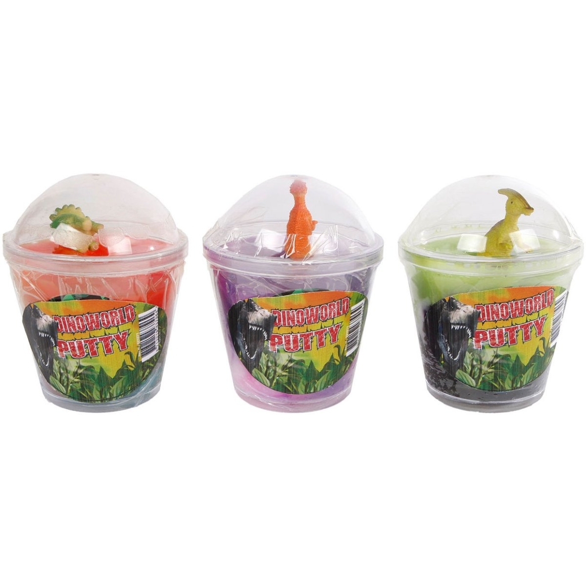 Artikel wordt assorti geleverd, de prijs is per stuk. Beleef prehistorisch speelplezier met de DinoWorld putty! Elke pot van 10 cm bevat kleurrijk slijm met een dinosaurusfiguurtje erin verstopt. Kneed, rek en ontdek welke dino erin zit.