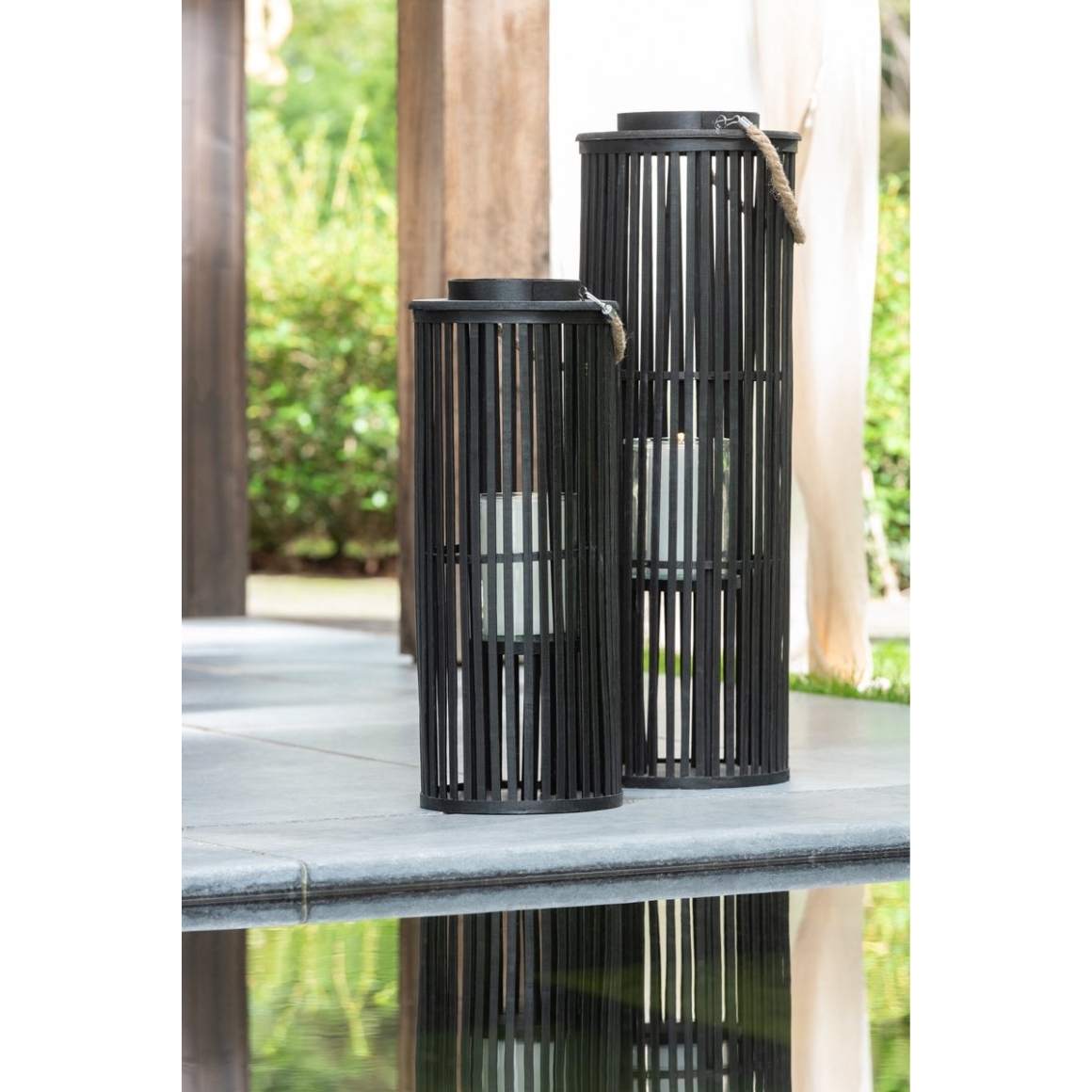 J-Line lantaarn Tube bamboe zwart 80 cm