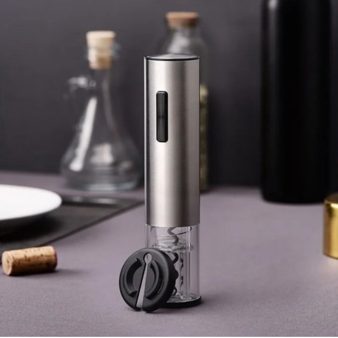 Elektrische kurkentrekker van rvs met een hoogte van 19,5 cm. Oplaadbaar via usb. Het slanke en moderne ontwerp zorgt voor een professionele uitstraling. Met een druk op de knop wordt de kurk automatisch verwijderd. Geschikt voor dagelijks en intensief gebruik. Compact formaat en eenvoudig te bedienen.