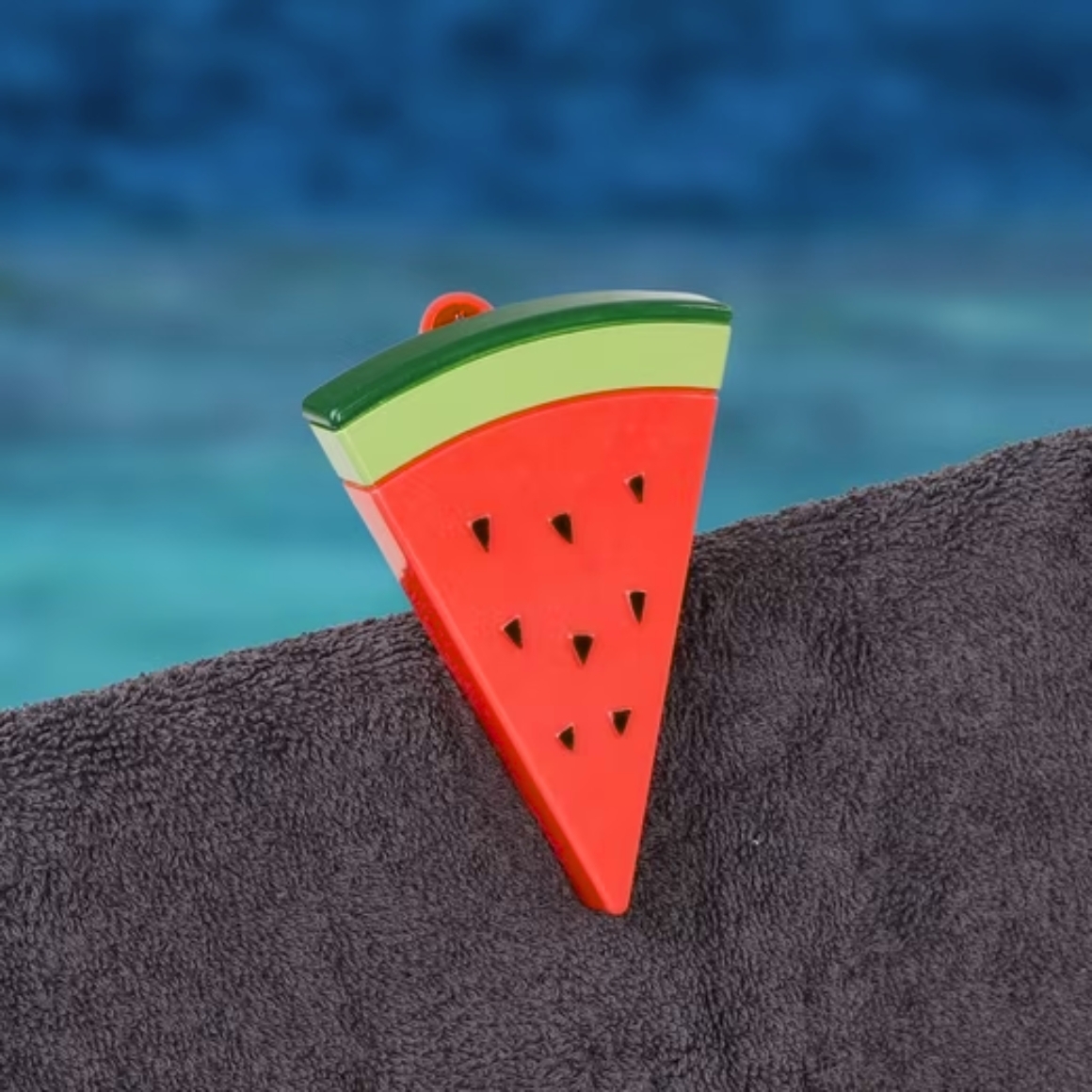 Praktische XL handdoek clips in watermeloen vorm, ideaal voor gebruik op het strand, bij het zwembad of in de tuin. De stevige kunststof klemmen zorgen ervoor dat handdoeken goed op hun plaats blijven op ligbedden of stoelen. Het speelse ontwerp geeft een zomerse uitstraling en is handig tijdens vakantie.