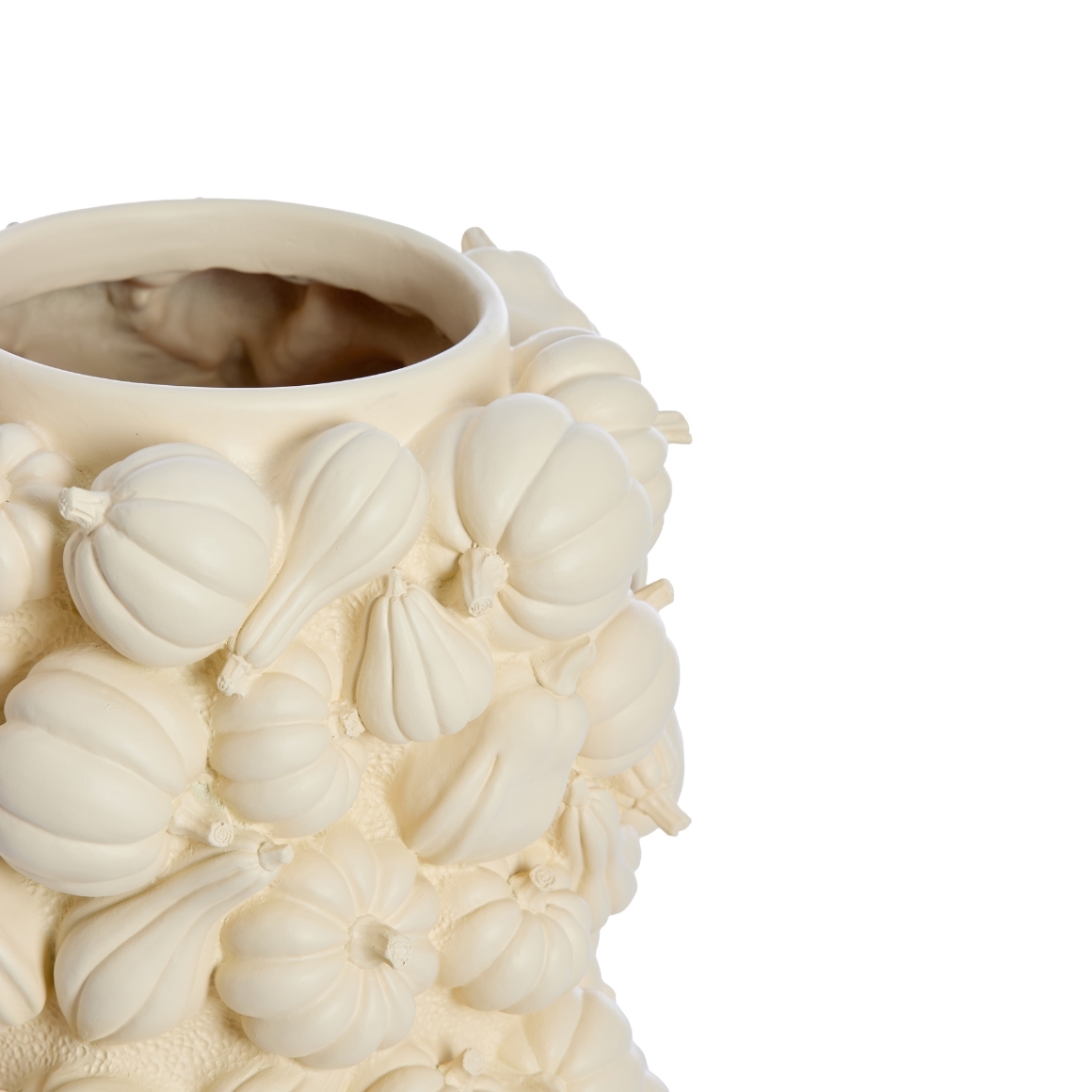 Opvallende kunststof vaas uit de Pumpkin serie van Light & Living met een speels 3D patroon van pompoenen. De creme kleur en slanke vorm geven een warme en decoratieve uitstraling. Met een hoogte van circa 33 cm is deze vaas geschikt als blikvanger op vloer, kast of tafel. Ideaal voor seizoensdecoratie in herfst en winter.
