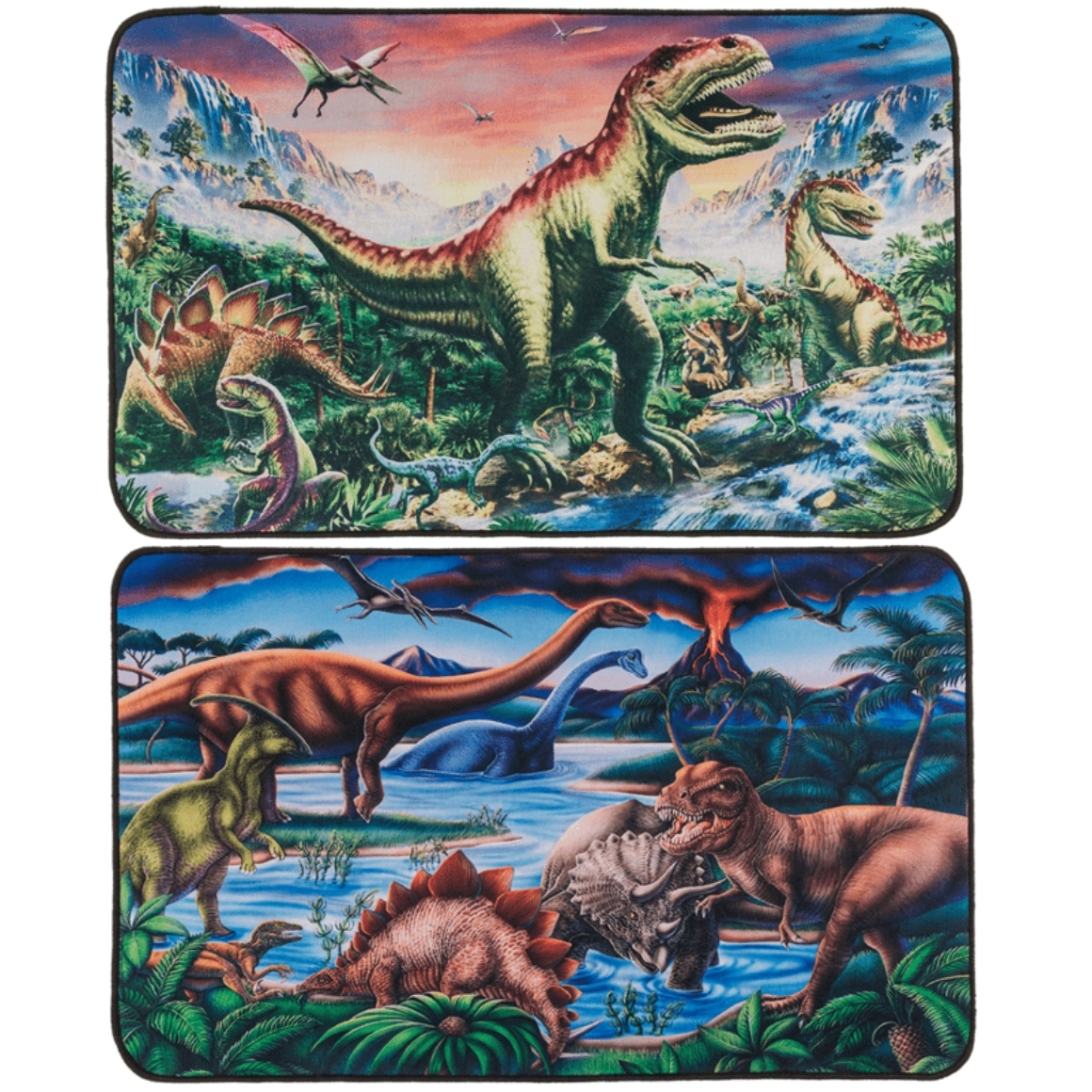 Artikel wordt assorti geleverd, de prijs is per stuk. Vloermat met kleurrijke dinosaurusprint en antislip onderzijde voor gebruik in huis of kinderkamer. Gemaakt van polyester en geschikt voor dagelijks gebruik. De mat heeft een formaat van 80 x 50 cm en kan eenvoudig met de hand gewassen worden. Decoratief en praktisch voor het opvangen van vuil en vocht bij de ingang.