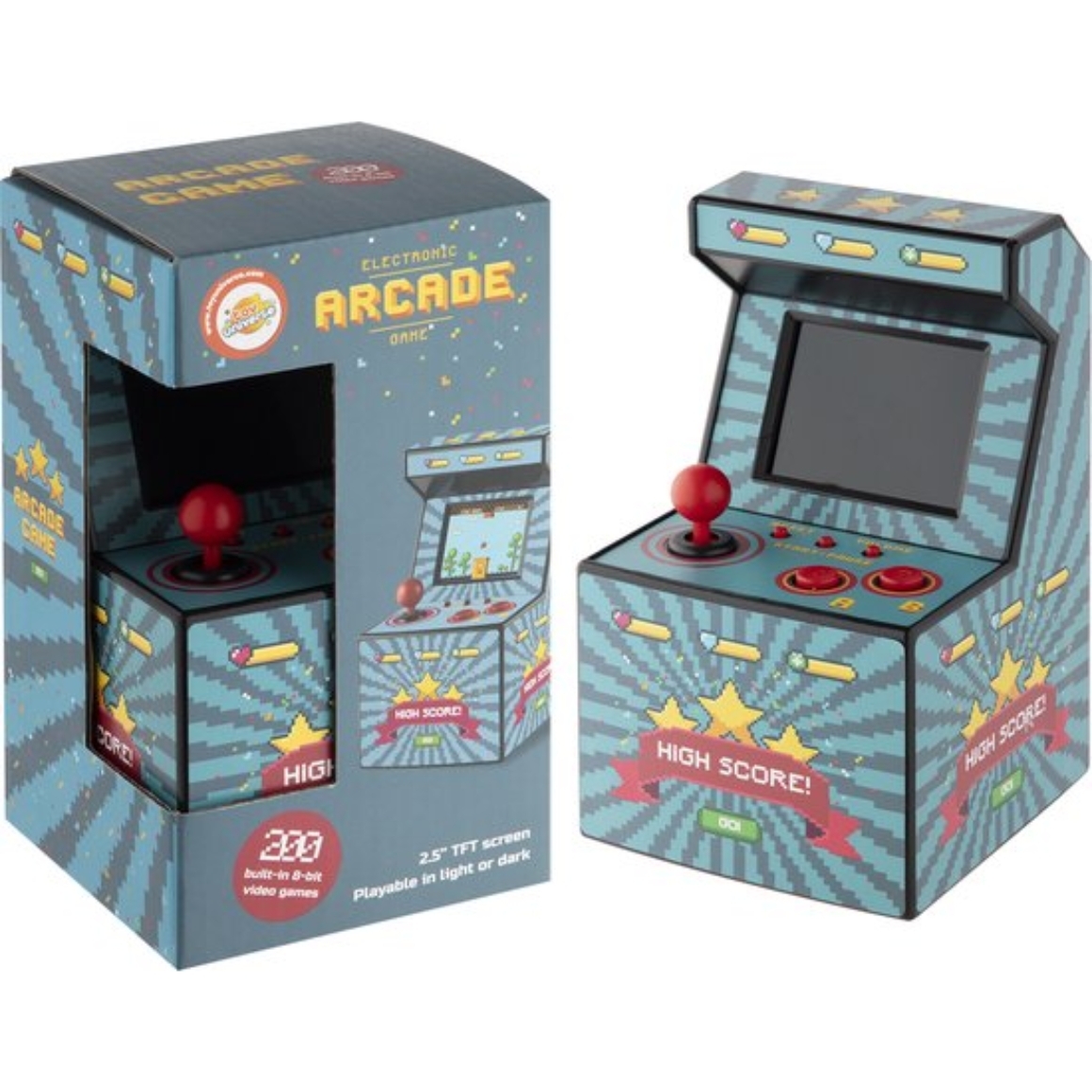 Artikel wordt assorti geleverd, de prijs is per stuk. Mini arcade spelcomputer van Toy Universe met 200 ingebouwde 8-bit spellen. Voorzien van een 2.5 inch TFT scherm en compacte behuizing van 15,5 cm. Geschikt voor thuis of onderweg en eenvoudig te bedienen met joystick en knoppen. Werkt op 3 x AA batterijen niet inbegrepen.