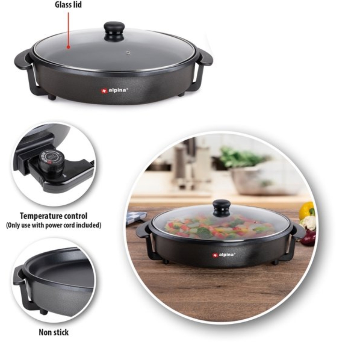 Alpina elektrische party pan hapjespan 40 cm 1500W
