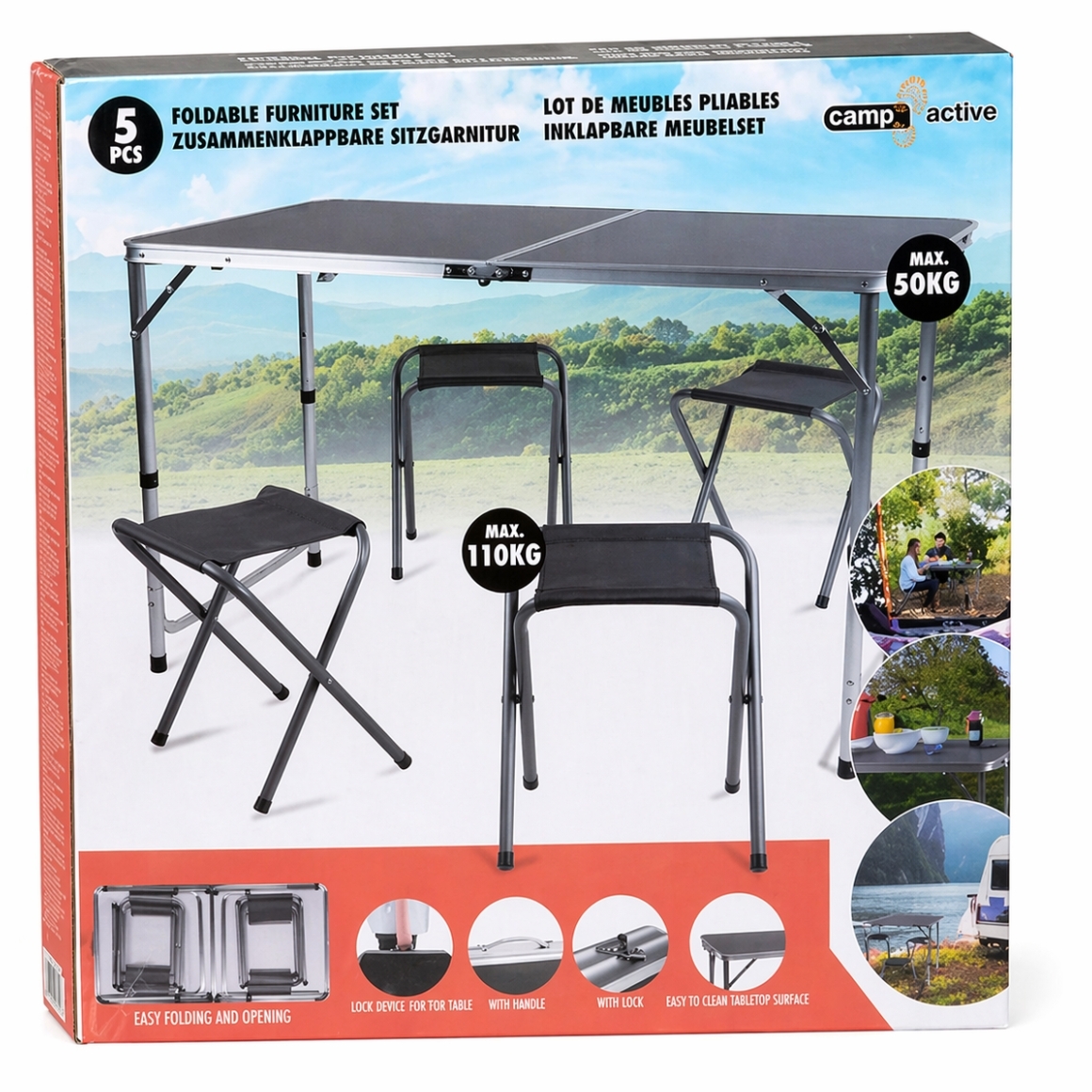 Camp Active inklapbare campingtafel met krukjes 120 x 60 cm 5-delig