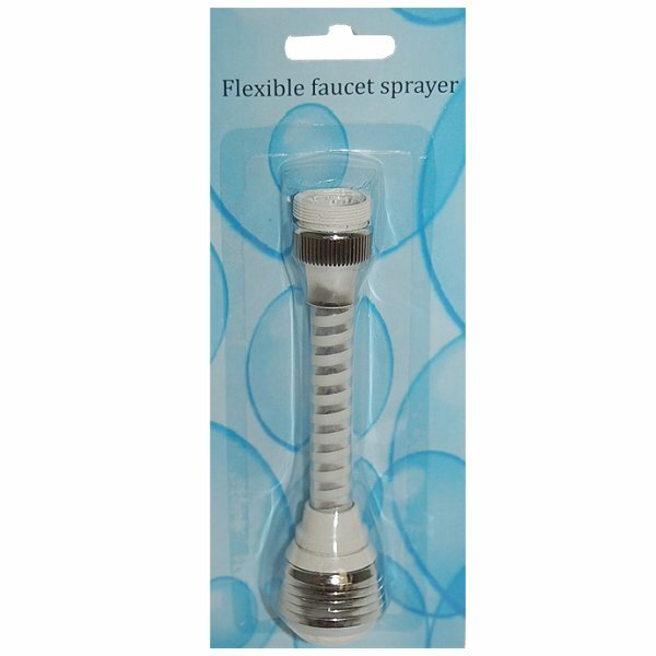 Kraanslang met waterbesparende sproeier. Eenvoudig aan de kraan te bevestigen flexibele kunststof kraanslang met sproeikop met instelbare waterstraal. De slang is 360 graden draaibaar zodat u gemakkelijk de hele spoelbak kunt spoelen.