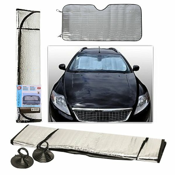 Autozonnescherm 130x60 cm. Opvouwbaar aluminium warmte werend zonnescherm voor de auto voorruit. Het auto zonneschem is gemakkelijk te bevestigen d.m.v. 2 elastieken en 2 de bijgeleverde zuignappen. Ook zeer geschikt voor gebruik bij vorst als anti ijs-zeil.