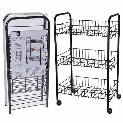 Opbergrek met wielen metaal zwart. Metalen keukentrolley met 3 manden, dit rek is ideaal voor het opbergen van spullen in de keuken, badkamer, toilet etc. Afmeting rek: ca. 40x26x62 cm.