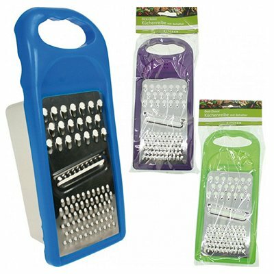 Keukenrasp 4 in 1. Deze kunststof huishoudrasp met rvs snijbord heeft 3 verschillende snij/rasp functies en een handig opvangbak. De rasp wordt assorti kleur uitgeleverd in blauw, paars, en/of groen. Afmeting keukenrasp: ca. 21x9x7 cm.