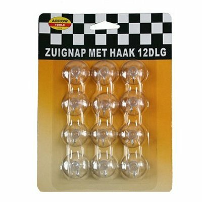 Set met 12 kleine transparante zuignaphaken met een doorsnede van ca. 2,5 cm. Afmeting zuignaphaken: ca. 2,5x1,2 cm.