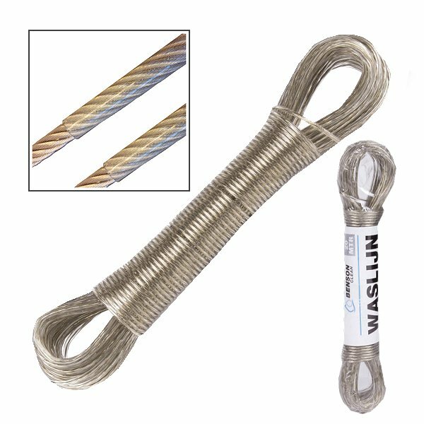 Waslijn doorzichtig staalkern 20 meter. Deze dunne sterke kunststof waslijn is voorzien van een staaldraad kern. Doordat dit een dunne waslijn is, is deze zeer flexibel en dus ook goed voor andere doeleinden te gebruiken. Dikte waslijndraad: 2 mm.