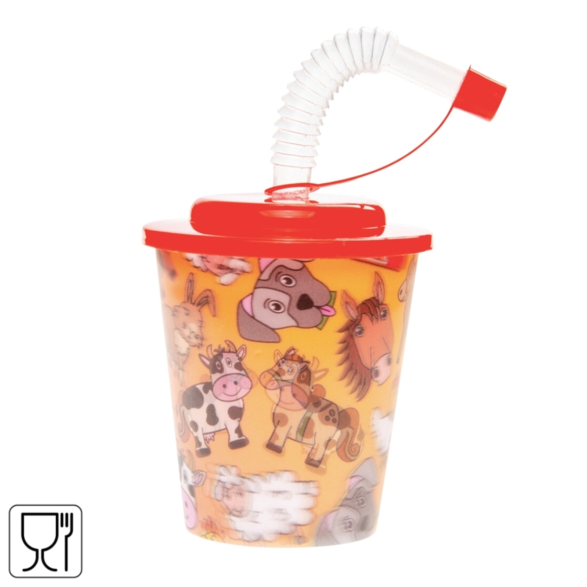 3D beker met rietje en deksel boerderijdieren 250 ml