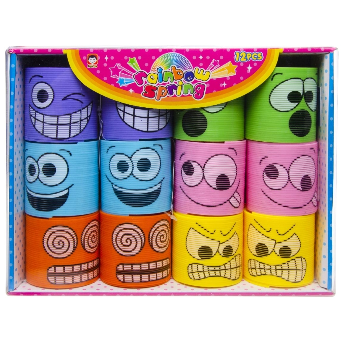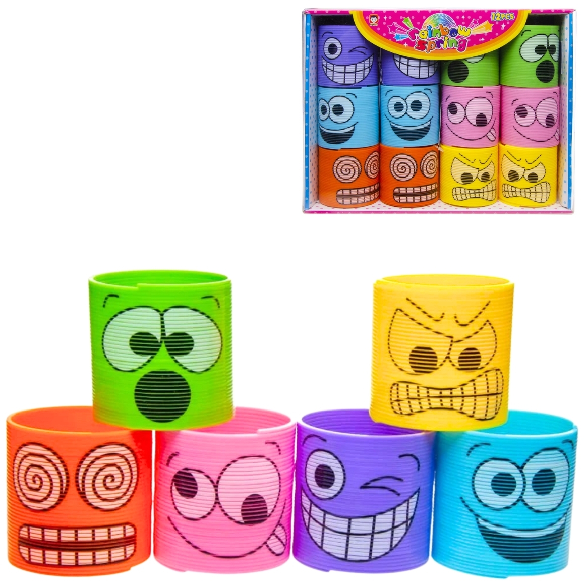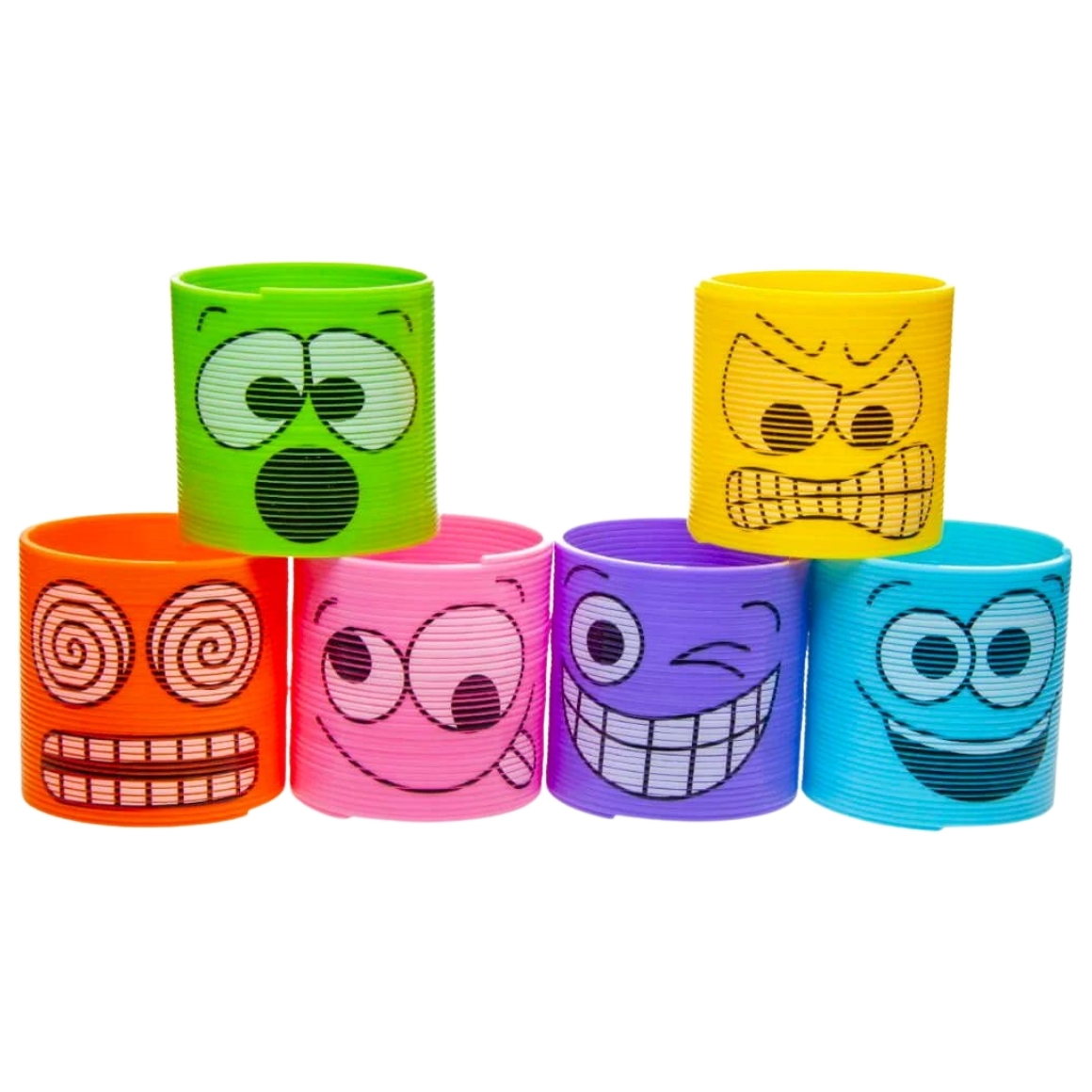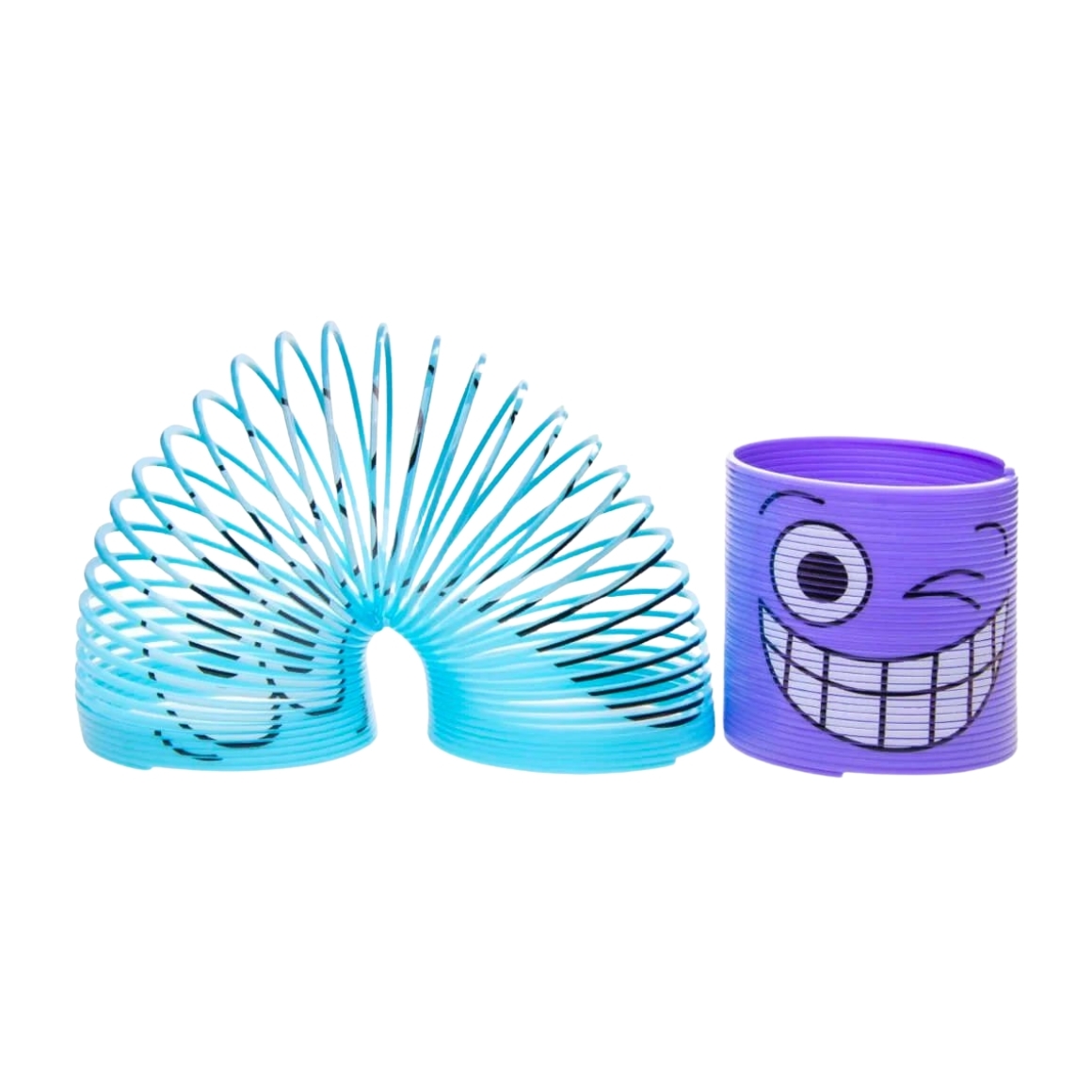 Zet de smiley springveer bovenaan een trap, geef de bovenkant een zetje en de veer loopt vanzelf de trap af.