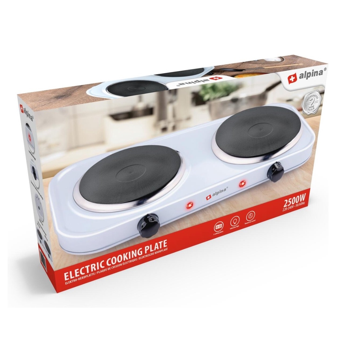 Eenvoudig te bedienen gietijzeren elektrische kookplaat. De temperatuur is gemakkelijk te regelen door de thermostaatfunctie. Voorzien van indicatielampjes en anti-slipvoetjes.