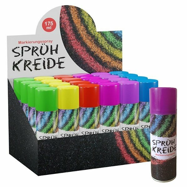 Krijtspray paars spuitbus 175 ml. Maak de mooiste graffiti straattekeningen met deze kant en klare paarse stoepkrijtspray. Het stoepkrijt spoelt na enkele regenbuien of een schrobbeurt met water vanzelf weer weg. Dit krijt is ook ideaal voor het tijdelijk markeren van diverse oppervlakten of het uitzetten van speurtochten en hinkelbanen. Dit speelgoed is niet geschikt voor kinderen onder de 3 jaar.