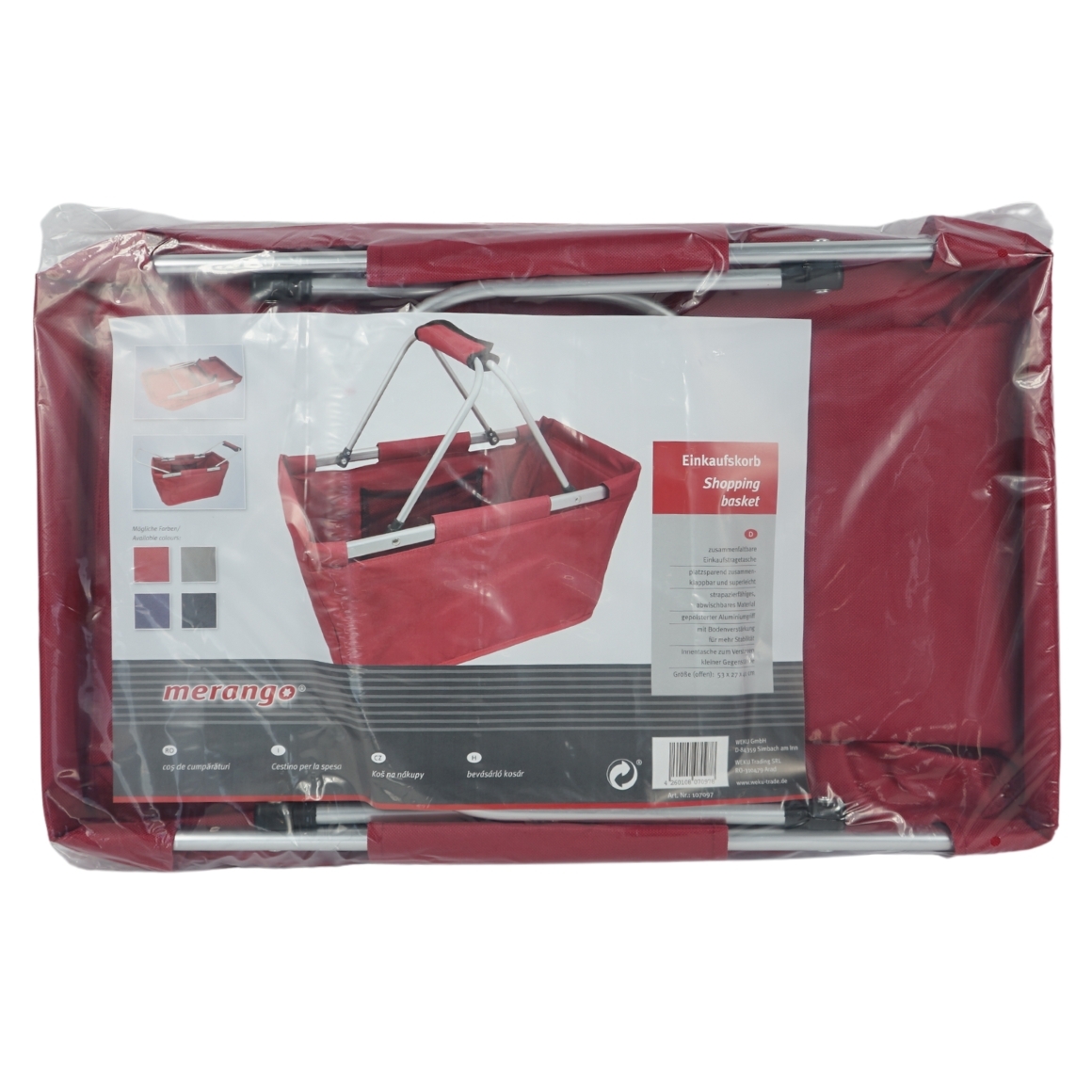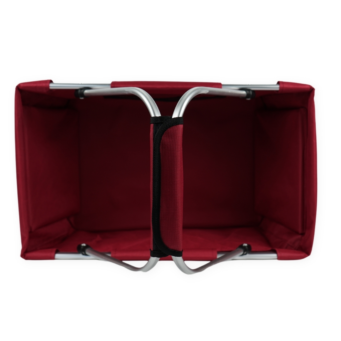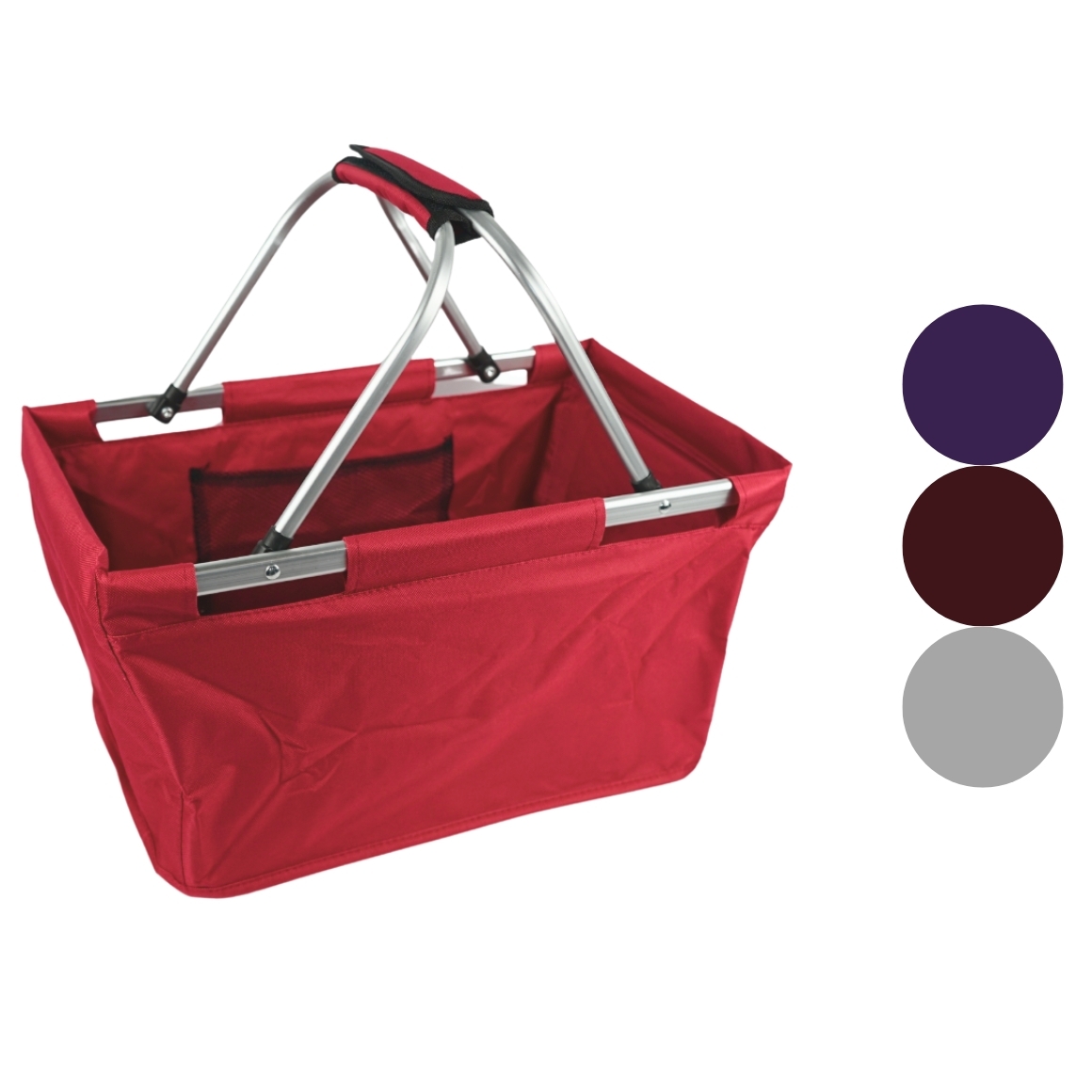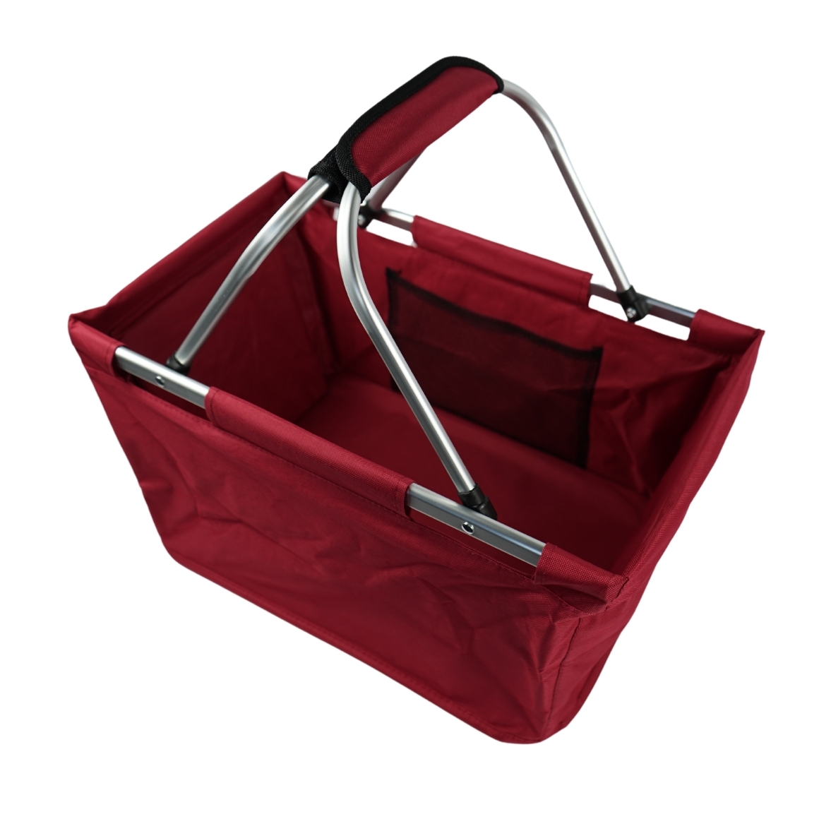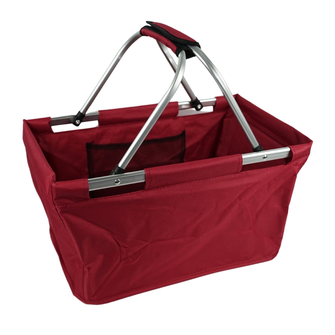 De mand beschikt over een gevoerde aluminium handgreep, vloerversterking en binnenzak voor het bewaren van kleine voorwerpen.