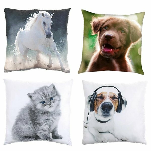 Kussen dieren kind 40x40 cm assorti 1 stuks. Schattig kinder sierkussen met een afbeelding van een paard, poesje of hondje. Leuk voor de kinderen voor in de slaapkamer. Het kussen is gemaakt van 100% polyester en is uitwasbaar in de handwas. Wordt assorti dessin uitgeleverd
