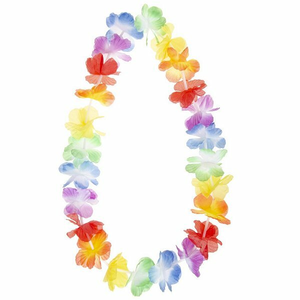 Hawaii ketting krans 50 cm. Volle fleurige Hawaii bloemenslinger met een afmeting van ca. 50 cm. Leuk voor elk feest, festival, strandfeest, verjaardag, beachparty, carnaval etc.