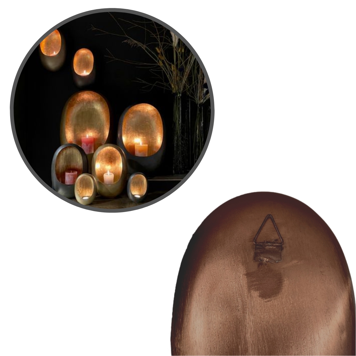 Ovalen theelichthouder voor aan de wand uit de serie Eggy gemaakt van metaal.