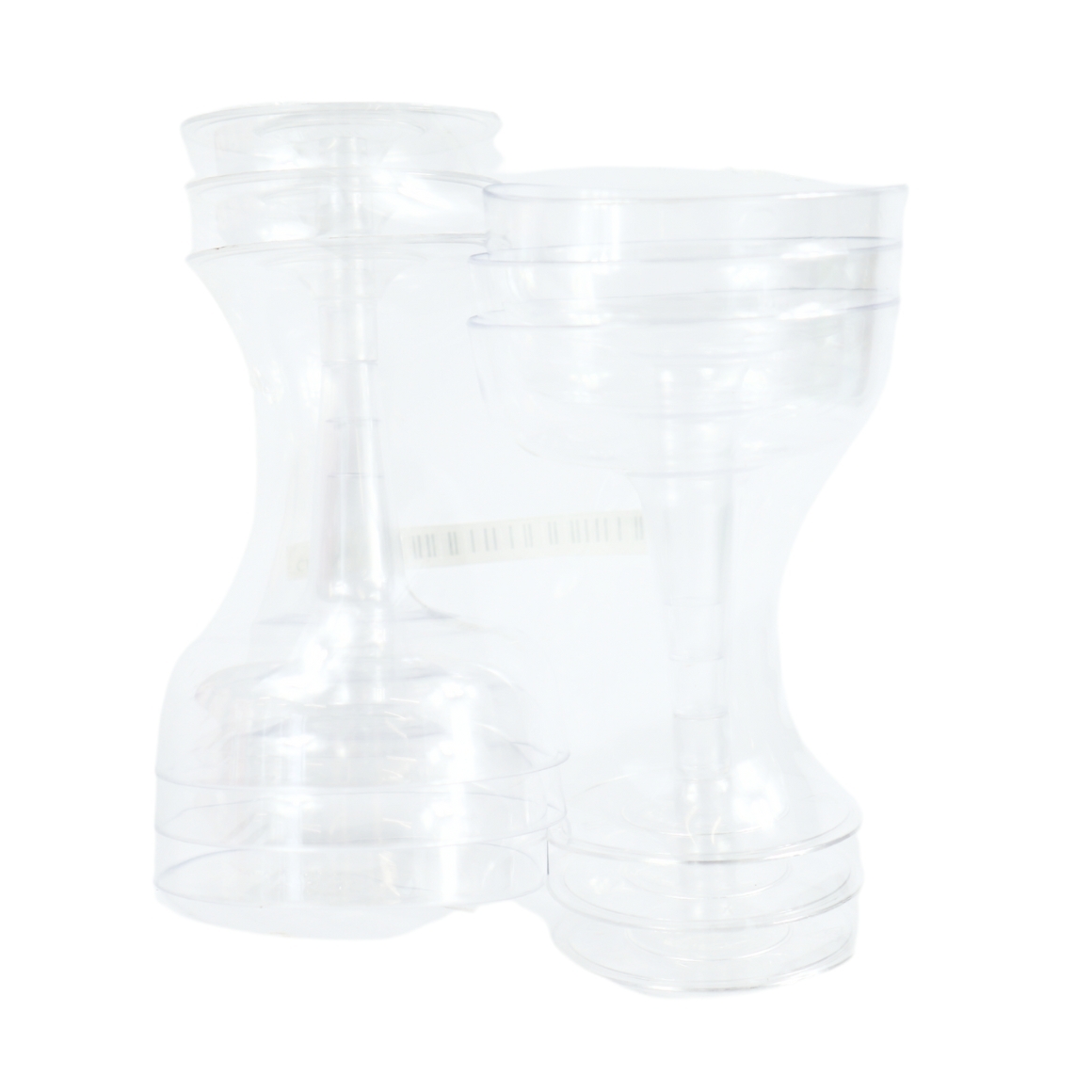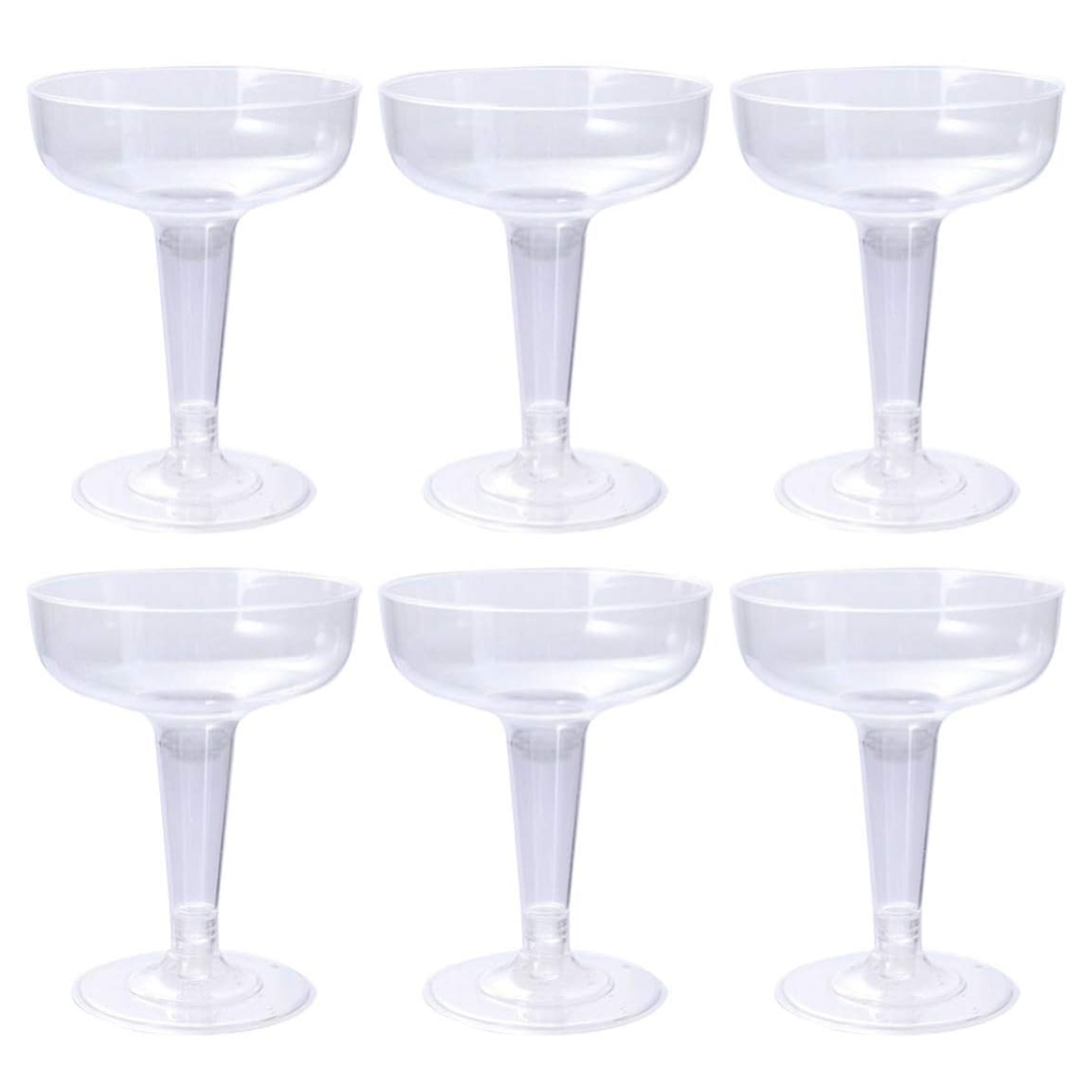 Deze champagne coupe glazen zijn gemaakt van plastic en hebben een inhoud van 150 ml. Ze worden geleverd in een verpakking van 6 stuks, elk in twee delen.