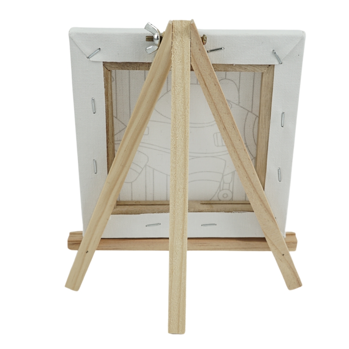 De schildersezel is 18 cm breed en 19,5 cm hoog.