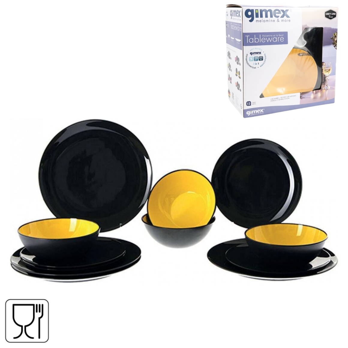 Ontdek de duurzame en stijlvolle 12-delige servieset van Gimex, perfect voor thuisgebruik of tijdens het kamperen. Deze set is gemaakt van melamine, bekend om zijn lichtgewicht en robuuste kwaliteiten. De levendige gele kleur voegt een moderne tint toe aan elke maaltijd.
