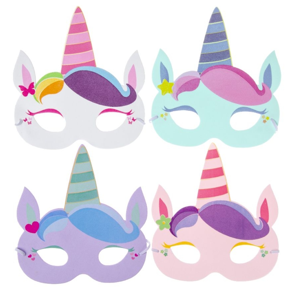 Foammasker eenhoorn 18,5 cm 4 assorti