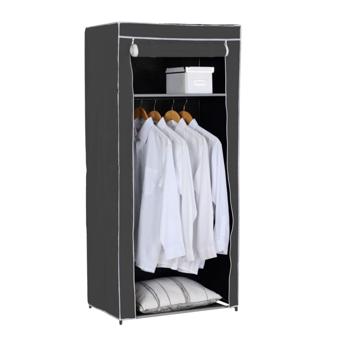 Opvouwbare kledingkast met een kledingroede en extra opbergvak bovenin.