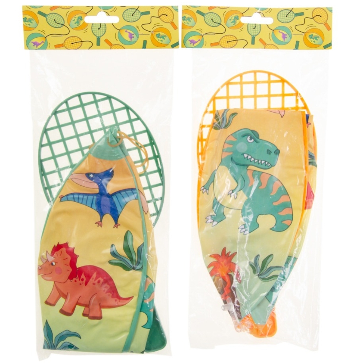 Tennisracket met bal aan elastiek dino 24 cm 2 assorti
