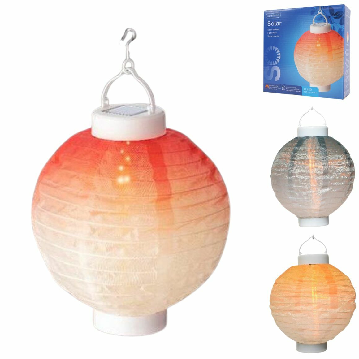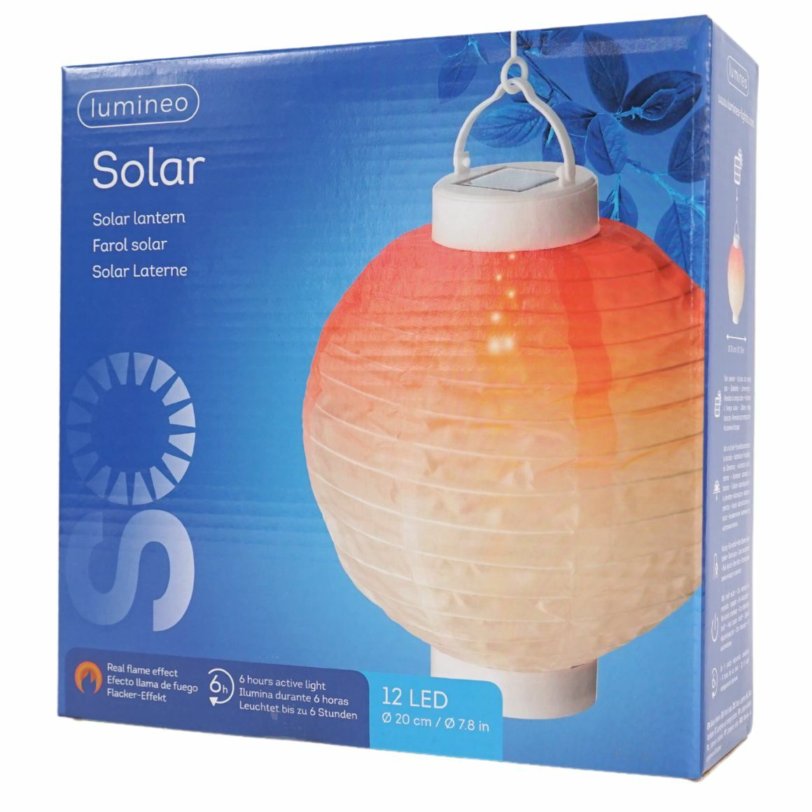 Deze Lumineo solar lantaarn gemaakt van nylon is alleen geschikt voor buitengebruik. De lantaarn brandt tot 6 uur bij volledige oplading en gaat automatisch aan bij schemering. Inclusief een AAA Ni-MH 200 mAh batterij zorgt deze lantaarn voor een warme, sfeervolle verlichting in uw tuin of op uw terras. De lampen van deze lantaarn zijn niet vervangbaar. De lamp is aan de binnenkant voorzien van een aan- en uitschakelaar.