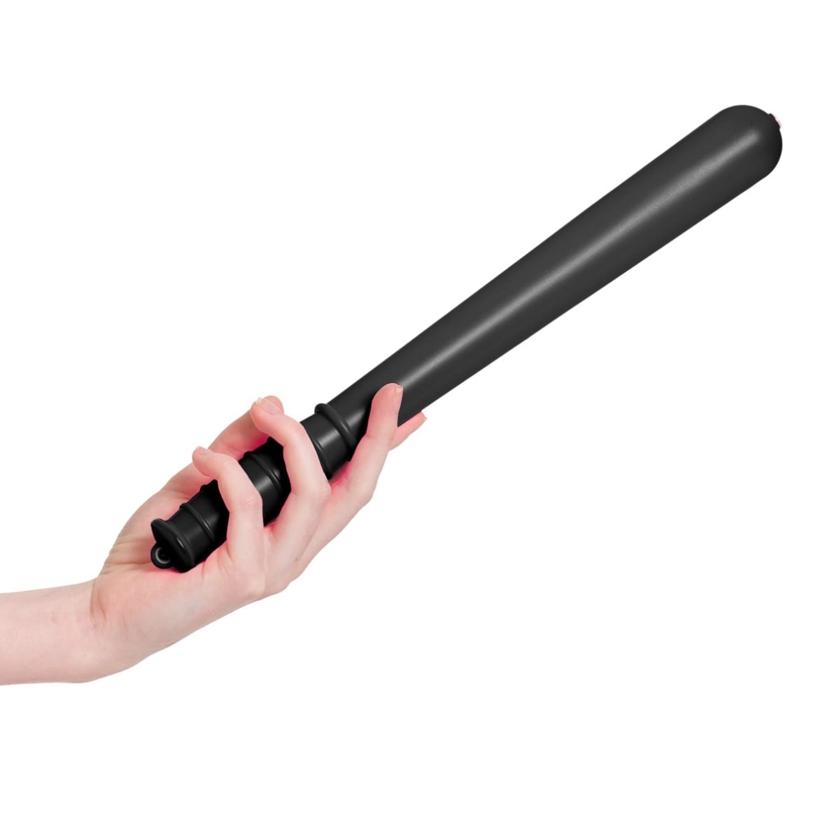 Als de knuppel ingeduwd wordt maakt hij een piepend geluid.