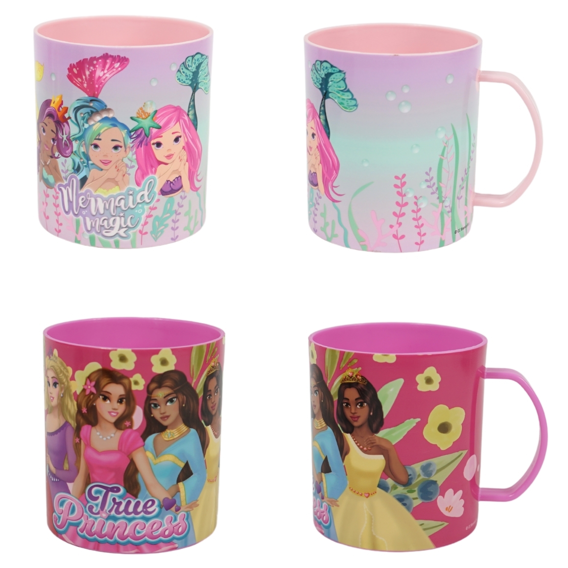 Artikel wordt assorti geleverd, de prijs is per stuk. Kunststof mok met een inhoud van 340 ml. De mok is food safe, geschikt voor in de vaatwasser en mag in de magnetron (max 2 min op 600 watt).