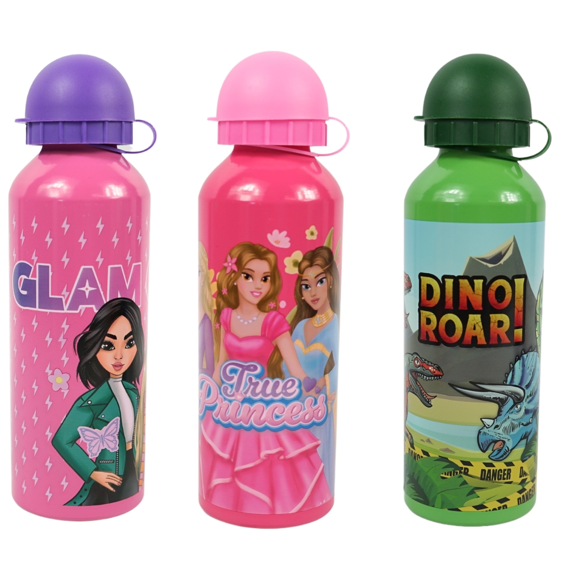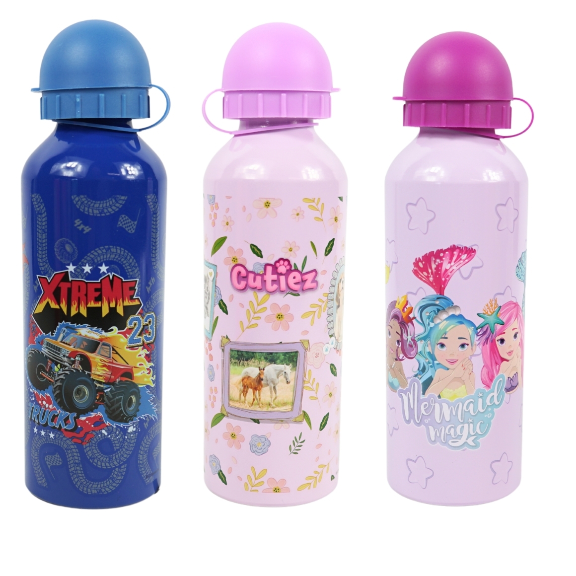 Metalen bidon met een kunststof dop, de bidon heeft een inhoud van 500 ml.