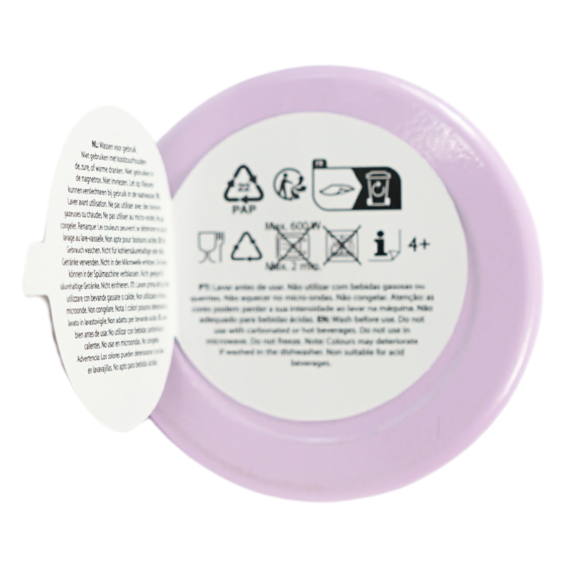 De fles is foodsafe maar niet geschikt voor in de vaatwasser of magnetron.