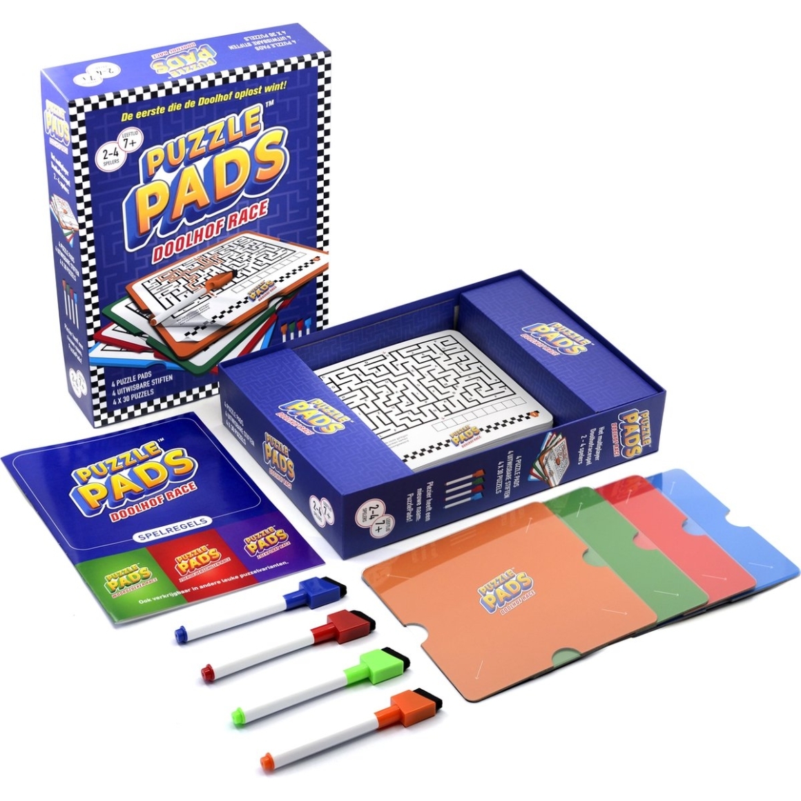 Ga de uitdaging aan met Puzzlepads - doolhof race en ontdek wie het snelste uit het doolhof kan ontsnappen! Dit spannende bordspel wordt geleverd met 4 uitwisbare stiften en 4 sets van elk 30 speelkaarten. Daagt 2 tot 4 spelers vanaf 7 jaar uit om snelheid en denkvermogen te testen. Perfect voor vrienden en familie, dit spel zorgt gegarandeerd voor urenlang speelplezier. Wie wordt de ultieme doolhofkampioen?